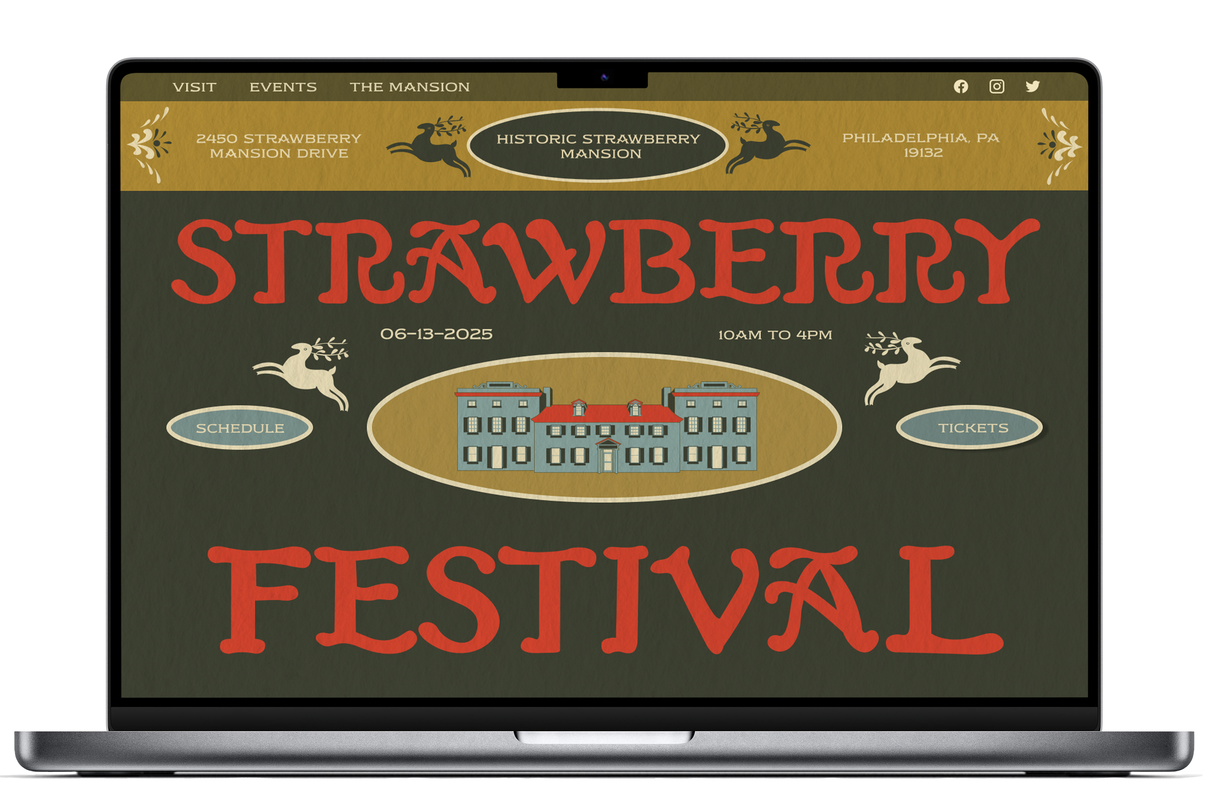 The process of creating this rebrand began with historical research on the Historic Strawberry Mansion, located in East Fairmount Park, Philadelphia, PA. Built in 1789, the mansion was originally named "Summerville" and was used as a summer retreat by Judge William Lewis. In 1930, a group of women called the Committee of 1926 worked together to restore the historic home to its former glory.